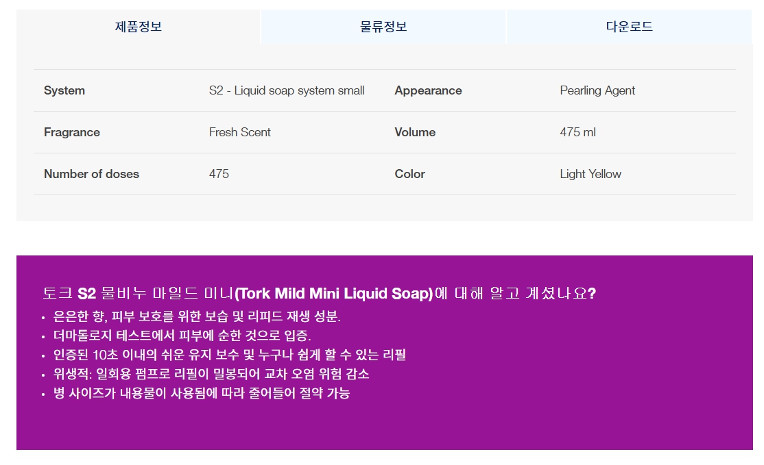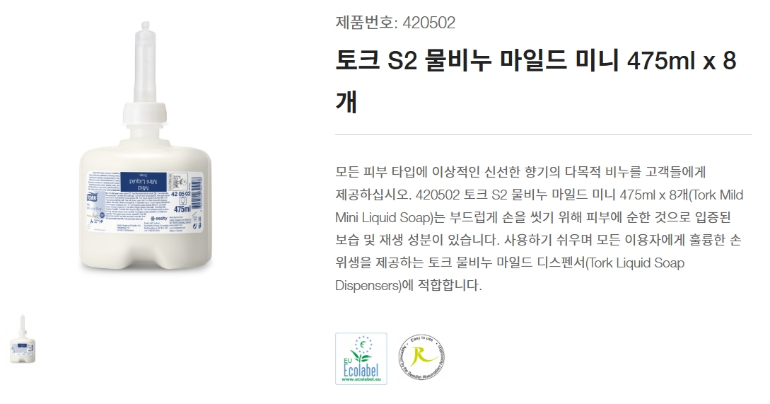 【토크S2 물비누 마일드 미니/485ml Ⅹ 8개】 토크S2/물비누 마일드 미니/485ml Ⅹ 8개/박스/디스펜스 별도/무료배송