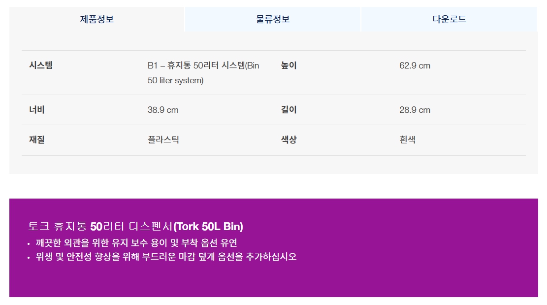 【토크B1 휴지통/50L】 토크B1 휴지통/50L/디스펜서/화이트/1개/무료배송