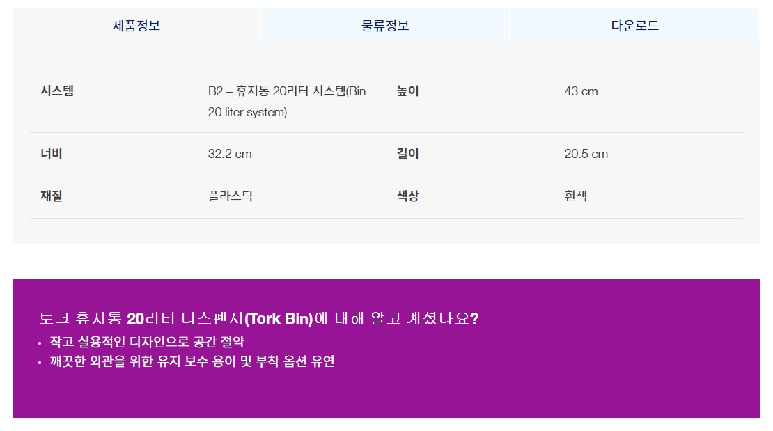 【토크B2 휴지통 20L】 토크B2 휴지통 20L/디스펜스/1개/무료배송